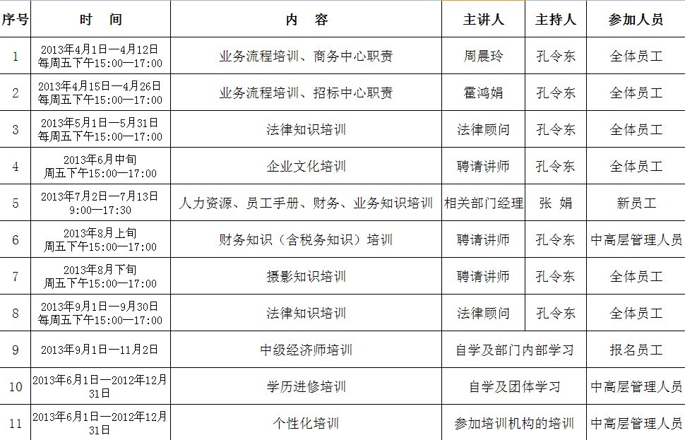 山東東岳國際經(jīng)貿合作股份有限公司2013年培訓計劃
