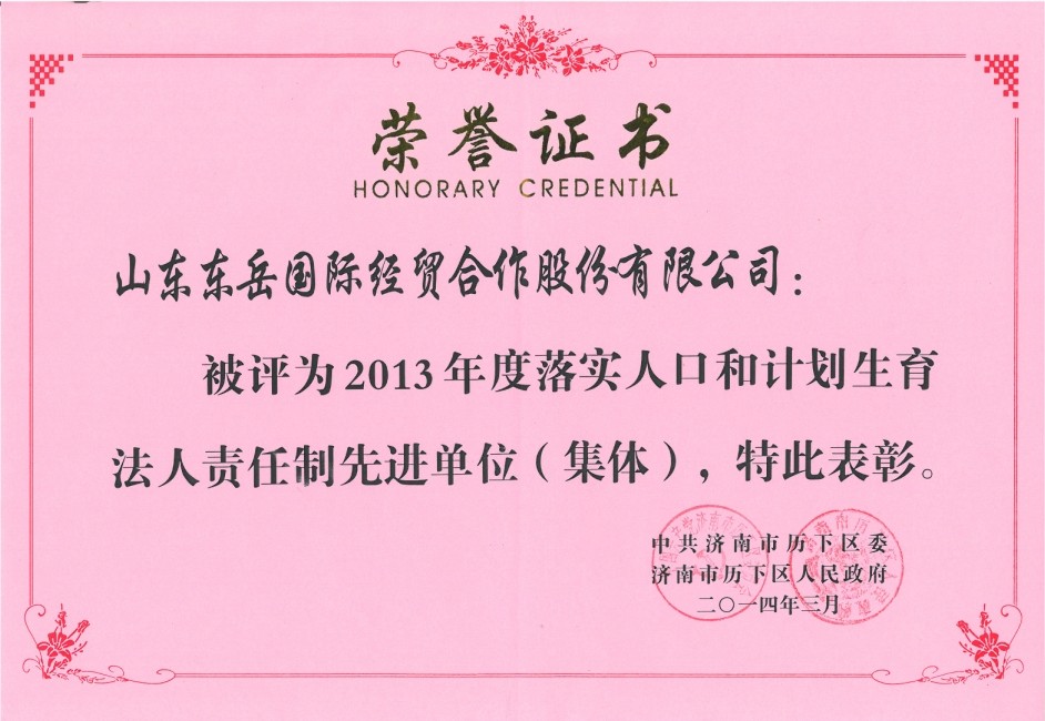 會(huì )上,對趵突泉地區2013年度的人口和計劃生育工作情況進(jìn)行了總結,指明了2014年的工作要點(diǎn),并對2013年度計生工作的先進(jìn)單位和先進(jìn)個(gè)人做了表彰通報,我公司被評為2013年度落實(shí)人口和計劃生育法人責任制先進(jìn)單位。這既是對公司以往計生工作的肯定,同時(shí)也鼓勵我們再接再厲、開(kāi)拓奮進(jìn),為開(kāi)創(chuàng )趵突泉地區人口和計劃生育工作新局面做出更大的貢獻。