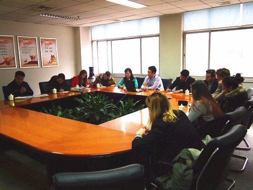 上午,公司領(lǐng)導與留學(xué)生在會(huì )議室進(jìn)行座談交流,劉總就經(jīng)營(yíng)理念、組織結構、發(fā)展狀況、企業(yè)文化及資質(zhì)榮譽(yù)等幾個(gè)方面將公司的概況介紹給留學(xué)生,留學(xué)生對公司核心競爭力、產(chǎn)品結構、多樣化業(yè)務(wù)類(lèi)型以及文化差異、民族習慣引起的國際貿易問(wèn)題等方面很感興趣,積極提問(wèn)并展開(kāi)討論,公司領(lǐng)導針對提問(wèn)一一作出解答,師生們表示通過(guò)了解對公司的發(fā)展充滿(mǎn)信心。之后,陳總帶領(lǐng)留學(xué)生參觀(guān)了公司辦公環(huán)境,對各部產(chǎn)品和經(jīng)營(yíng)情況作出說(shuō)明。